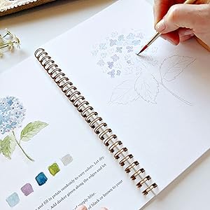 • Lay flat spiral pages for easy painting